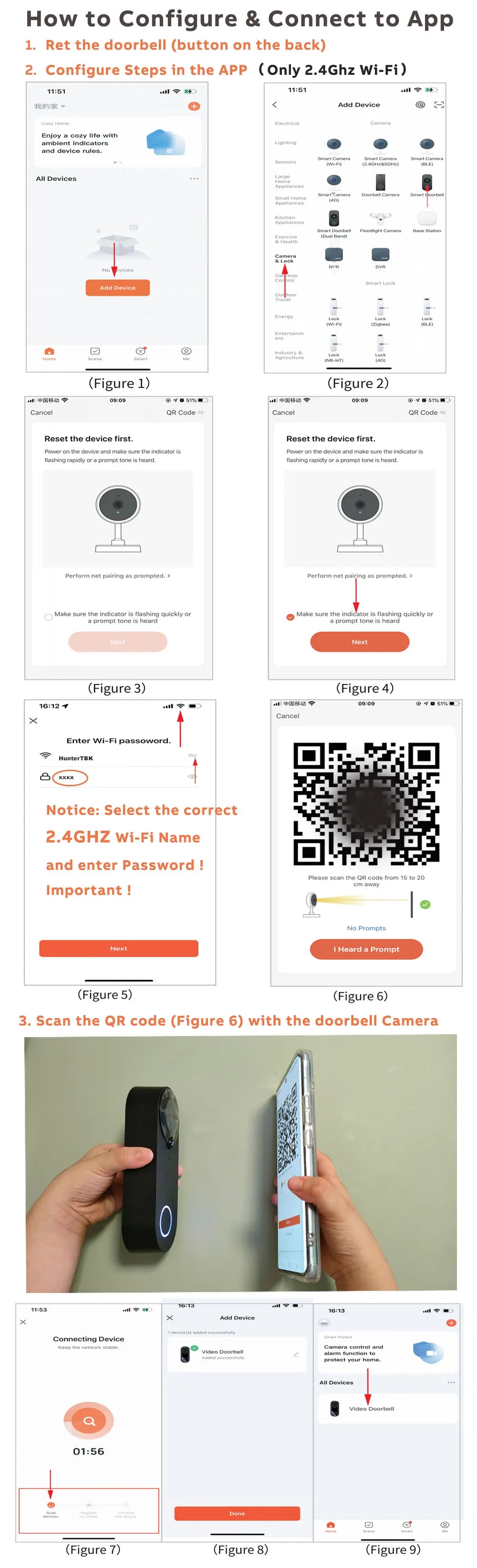 5. Please put the doorbell within the Wi-Fi signal range when configuring and installing to have prompt APP notification.
