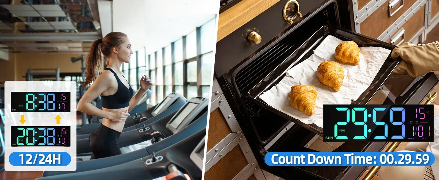 (Copy) 16.2'' Large Digital Wall Clock with Remote Control Big LED/Dual Alarm/8 RGB Colors Digital Alarm Clock Electronic Watch